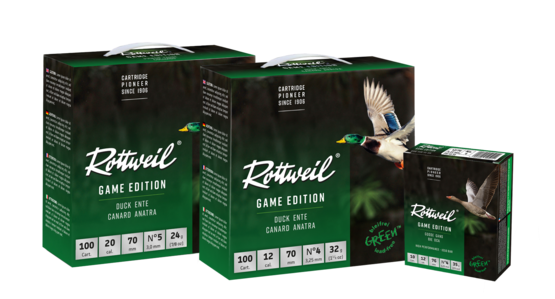 - ROTTWEIL GAME EDITION «ENTE», Kaliber 12/70, 32G, 3,25MM Verpackung mit 100 Schuss, Artikelnummer 2403360