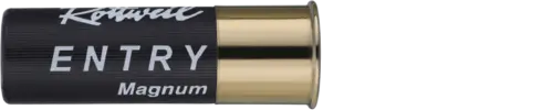 The 12/70 Magnum ENTRY I is a special shell for special police units and military users. It is designed for the forcible opening of doors by means of a shot placed next to the strike plate and/or the hinges. The shell is fully compatible with pump-action and semi-automatic shotguns. It is designed for shotguns with Magnum proofing according to C.I.P. Compacted zinc powder with a mass of 32.5 g is used as the active ingredient. This safely penetrates a St-37 type plate with a material thickness of 3mm when fired at a distance of approx. 2 cm from the target. The powder compact disintegrates completely upon impact with the sheet metal, which minimises collateral risk and the user’s exposure to ricochets.